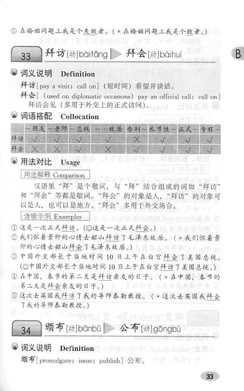 本书的体例是,首先列出两个(或三个)意义相同、相近或相互有关联的词语,标出词性,加注汉语拼音,然后从以下三个方面,分层次地对它们进行比较和分析。