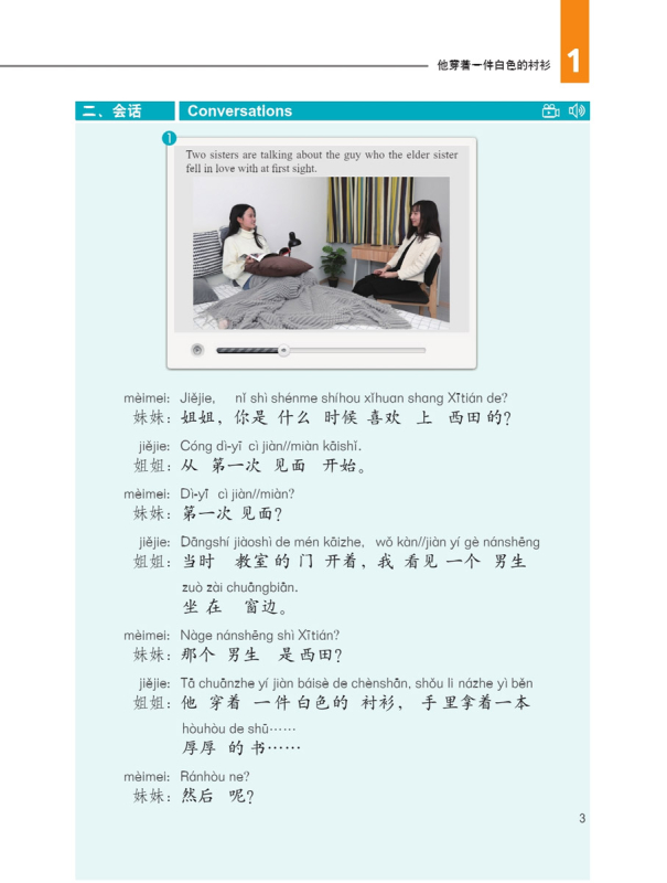 5.融合媒体技术。会话课文采用高清情景视频形式呈现,标准句、会话及生词部分既提供录音文件(扫描封底二维码)。