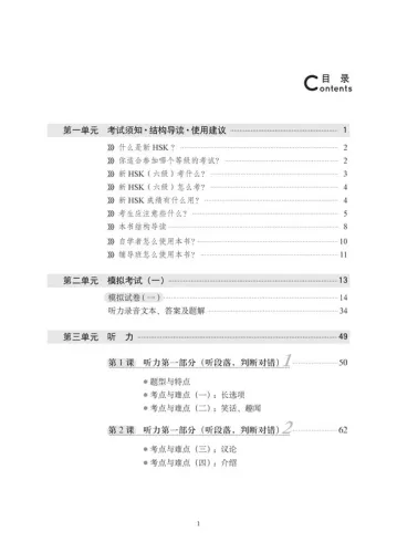 This book, written for the New HSK (Level 6) training institutions, candidates and their Chinese teachers, is based on the testing points and difficult points of level 6, illustrating them with examples from the past tests, combining instruction with practice, reinforcing learning through immediate exercises, and making timely summaries so that candidates can make steady progress. It also studies the key words prescribed in the outline of level 6. The book is divided into the following parts: About the Test/Introduction to the Structure/Advice for Users—Model Test 1 (pre-tutorial test so that you’ll find your weak points)—Unit of Listening Comprehension (specific training)—Unit of Reading Comprehension (specific training)—Unit of Writing (specific training)—Model Test 2 (summary, warm-up exercise before the real test). The stylistic features are explained in detail in the writing part, illustrating and analyzing them with students’ sample essays.