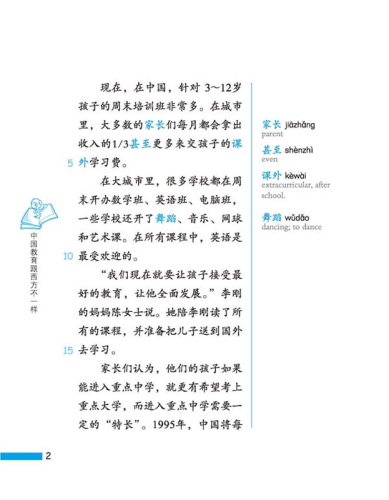 Chinese Education is Different from that of Western Countries (中国教育跟西方不一样) ist geeignet für fortgeschrittene Anfänger mit einem Vokabular von ca. 1000 chinesischen Wörtern. Die 12 kurzweiligen Artikel und Geschichten in diesem Buch handeln von dem chinesischen Lehr-, Erziehungs- und Prüfungssystem. Die Artikel bzw. Kurzgeschichten sind aus der Perspektive von Ausländern geschrieben, die ihre Erfahrungen und Gefühle über China teilen. Welche Unterschiede gibt es zwischen dem westlichen und dem chinesischen Lehr- Erziehungs- und Prüfungssystem?