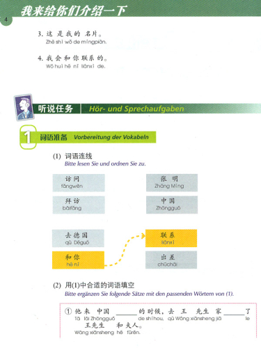 本书在听说任务和场景体验两部分各提供一段会话,语言难点以德文注释的形式出现。