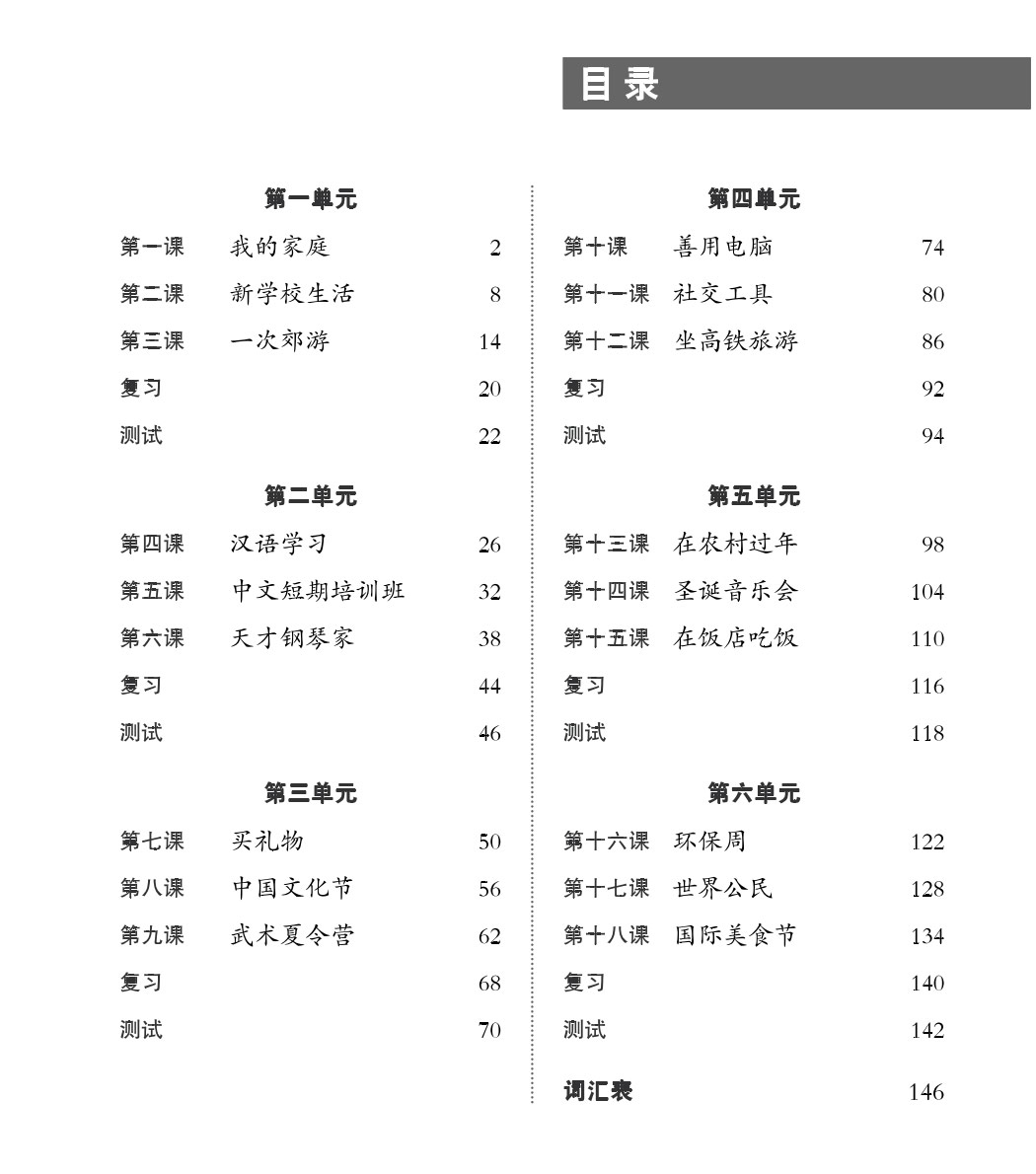 Stufe 1 (Bücher 1, 2, 3): Der Schwerpunkt dieser Stufe liegt auf der Schaffung einer soliden Grundlage durch das Erlernen von Pinyin, Zeichen, Vokabeln und Grammatik. Ziel ist es, den Schülern zu helfen, Interesse am Chinesischlernen zu wecken und Fähigkeiten im Umgang mit einfachem Chinesisch für die Kommunikation zu entwickeln.