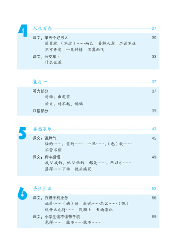 本书内容丰富,且多与时下热议话题相关,如旅行、看病、职场、婚姻、家庭、社交等,让学生在学习语言的同时,能够了解当代中国的情况及中国人的观念和生活。