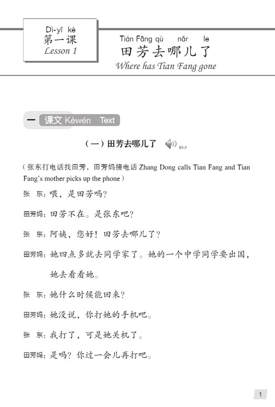 Chinese Course (Hanyu Jiaocheng) 1A third edition.