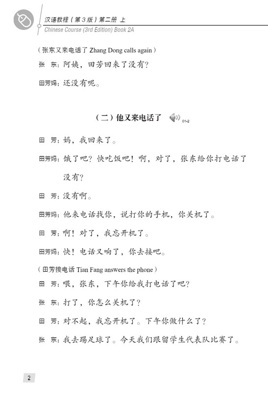 Chinese Course (Hanyu Jiaocheng) 2A third edition. Scan the QR code at the back of the book to get the online audio.