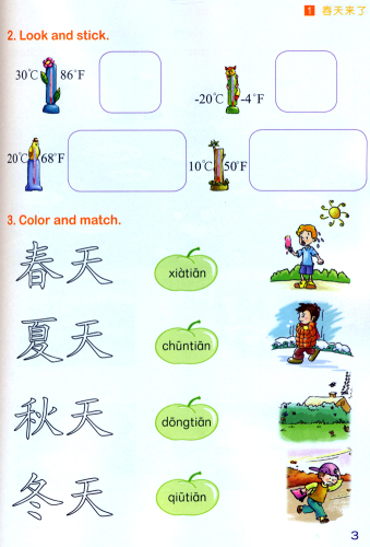 This is Workbook 3 of the second English edition matching Textbook 3, including six units, 12 lessons. Each lesson provides 6-8 exercises, falling into four sections—Chinese Pinyin, Chinese characters, words and conversations, which are supported by dynamic and innovative illustrations and designs and take lively and interesting forms, such as placing stickers, coloring, drawing lines, and solving mazes, etc. There are in addition topic-relevant handicraft activities. At the end of the book are pages of stickers.