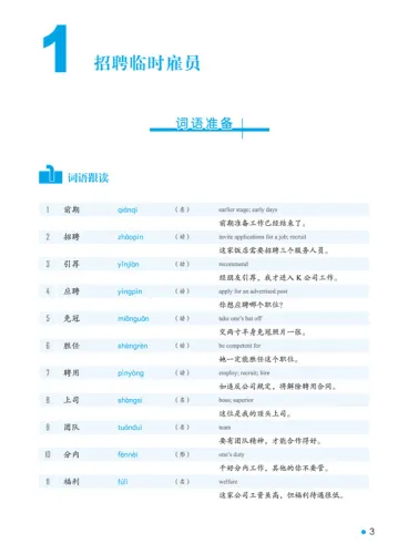 Business Chinese: Advanced Conversation is a set of business textbooks for undergraduates majoring in the Chinese language, suitable for foreigners who have master 3,500-4,000 common Chinese words and basic Chinese grammar. It enables students to participate in general business activities using Chinese, helping them learn the basic etiquette needed in doing business, get familiar with the primary articles in international trade contracts and learn to settle or claim compensation pursuant to relevant laws, regulations or international conventions. By using this set of textbooks, students can also get some common knowledge about types of trading and contracts and learn to give oral reports on market research, development and survey. This series has a total of 18 units divided into three volumes, each with six units. This is Book Ⅰ.