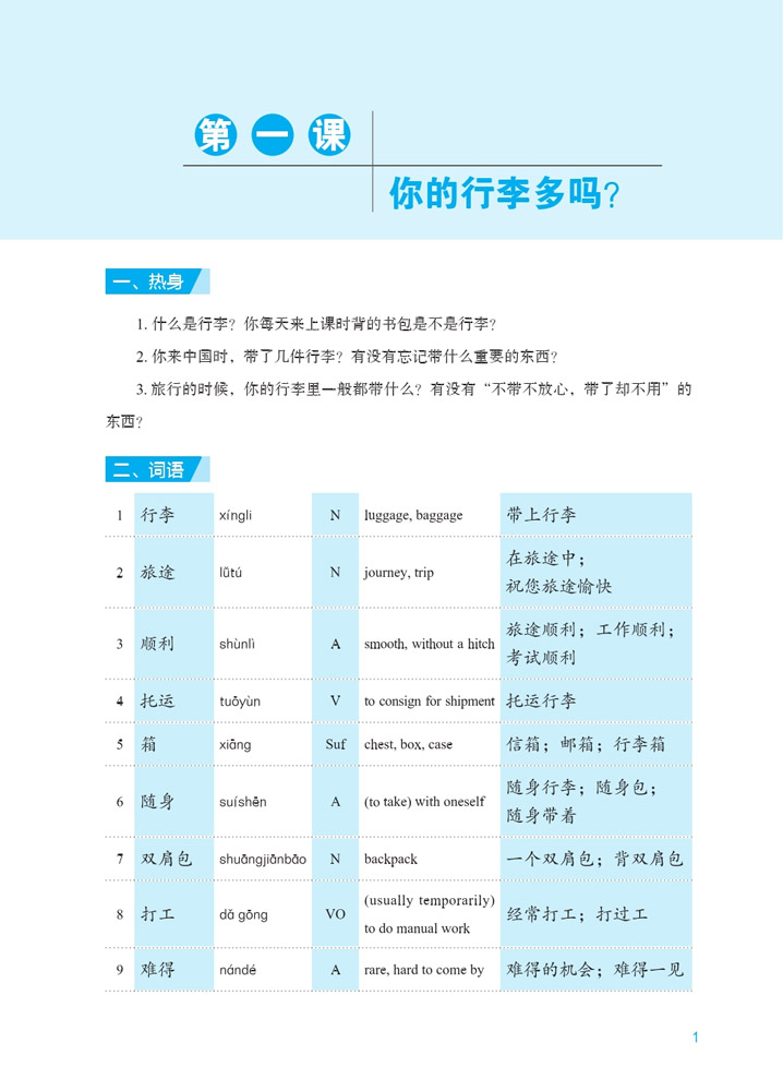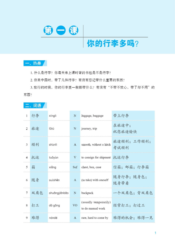 1. 为短期速成教学量身定制,初级四册全部中英文对照