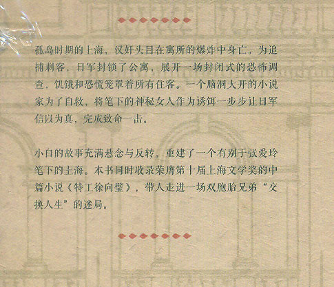 The title contains not only the novel Fengsuo (blockade) but also the novella "Special Agent Xu Xiangyu", which was awarded the 10th Shanghai Literature Award. Chinese edition.